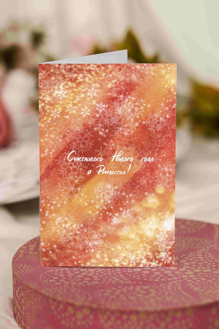 Дизайнерская открытка «Счастливого Нового Года и Рождества» (оранжевая) Ar98