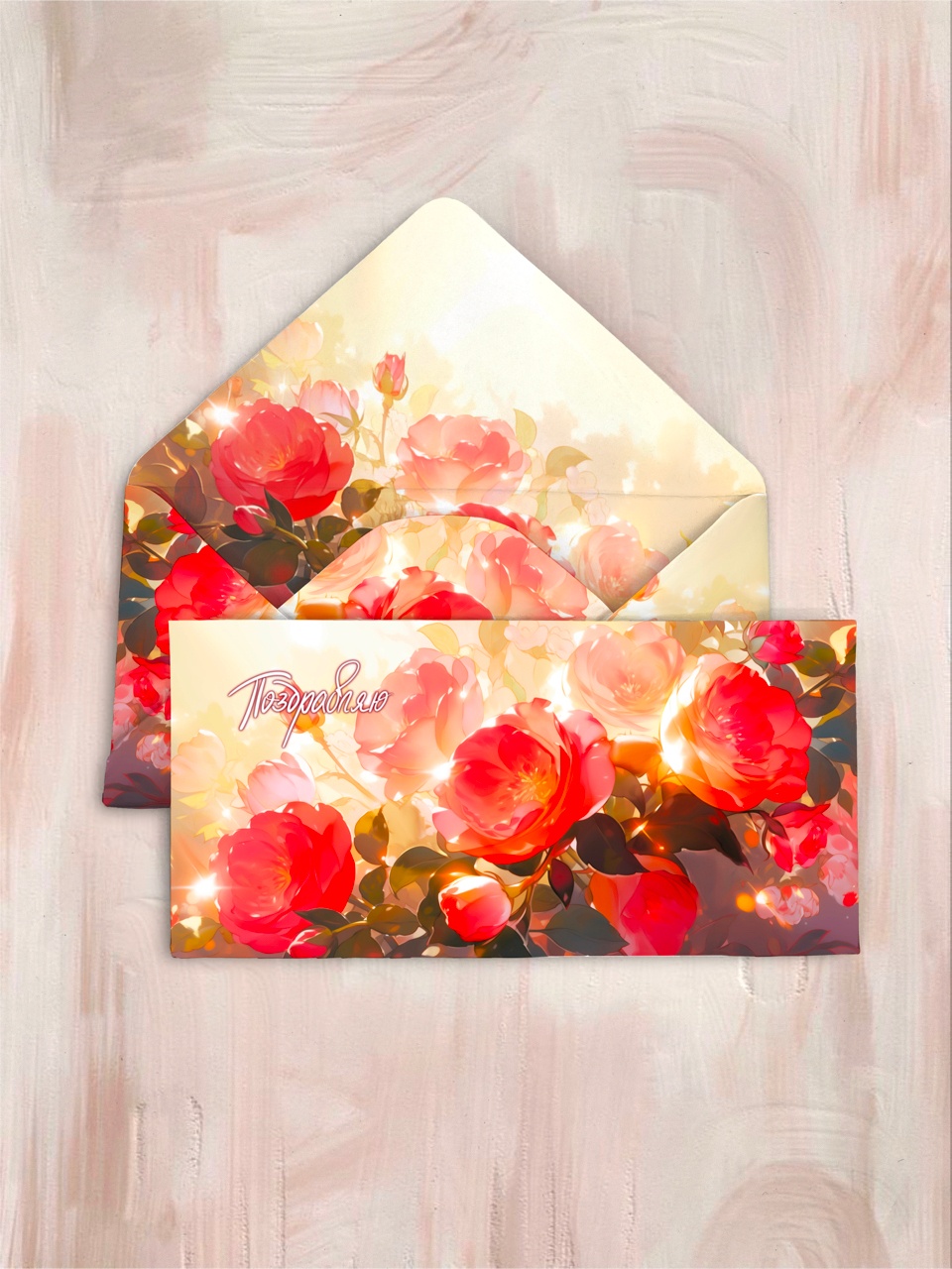 Конверт «Поздравляю! (красные цветы)» Cuf018