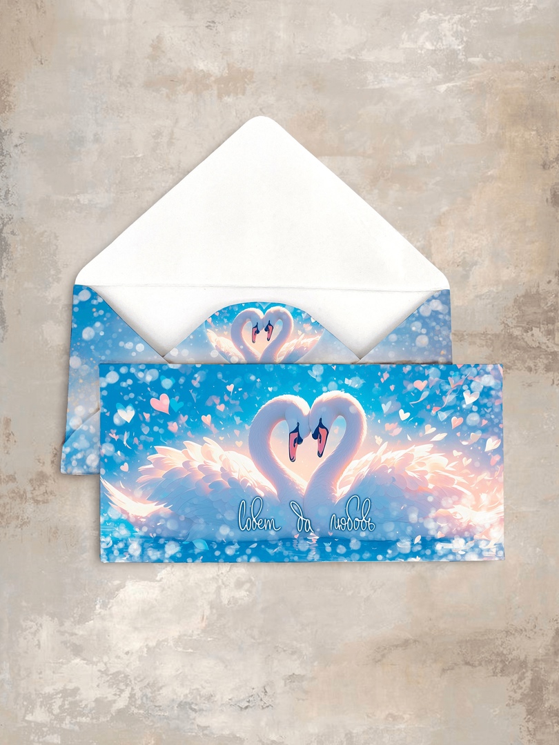 Конверт выполнен на высококачественной дизайнерской бумаге. Все наши конверты мы полностью рисуем сами. Уделяя огромное внимание мелочам, мы получаем уникальные конверты, пропитанные любовью и нежностью.